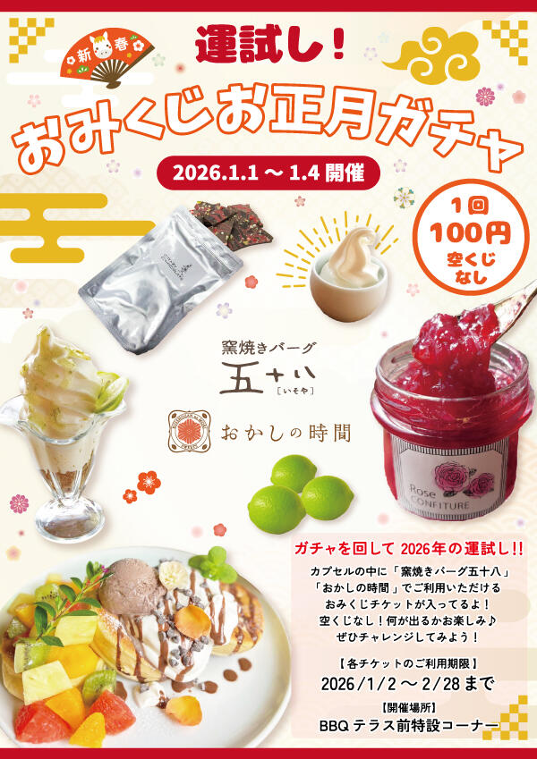 2026年1月1日から4日までの4日間限定で「おみくじお正月ガチャ」開催します☺